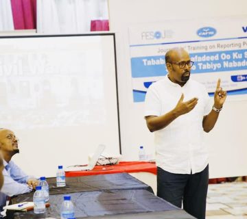 “The intention is how to further improve the journalists’ role in strengthening peace building program through using their professional skills and the media.” Farah Omar Nur, Secretary General of FESOJ has stated in his opening remarks.