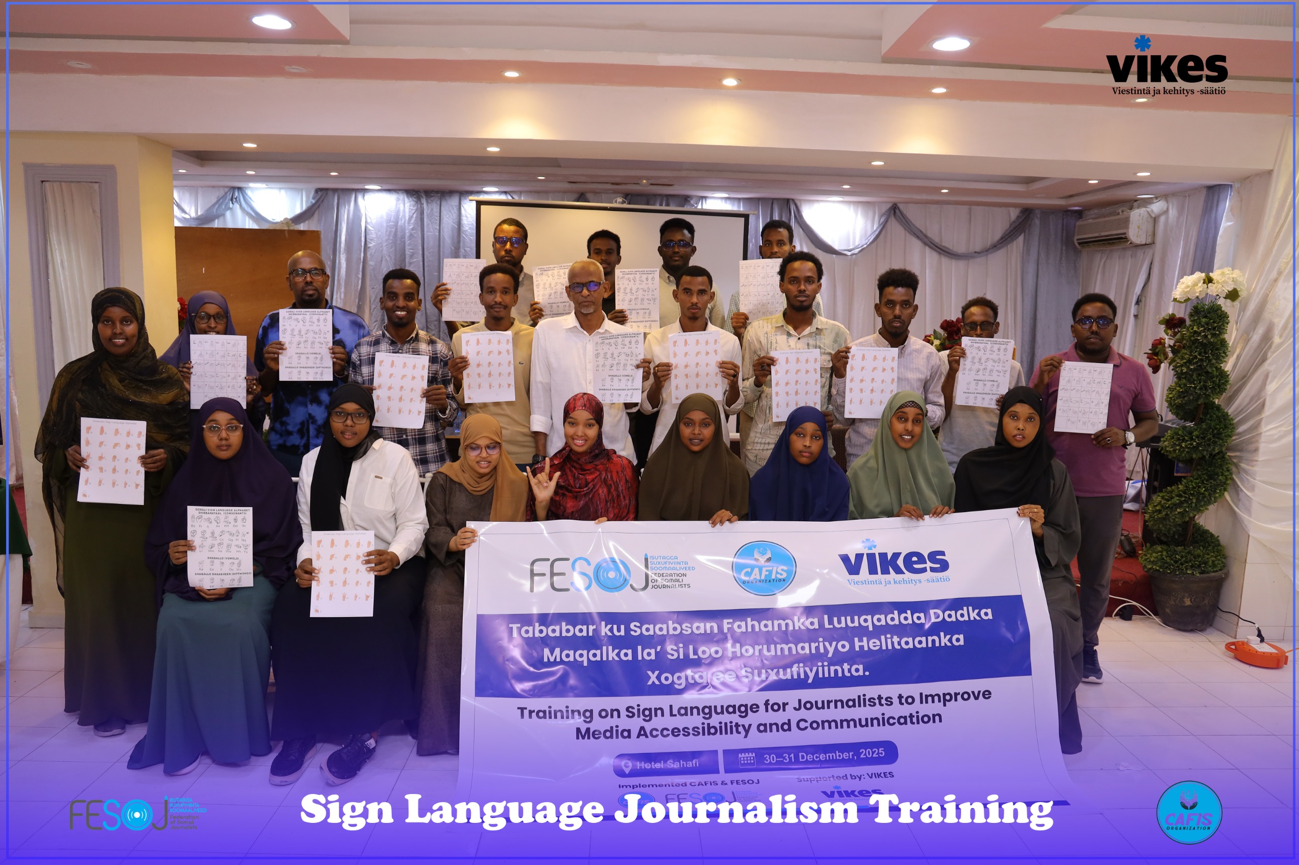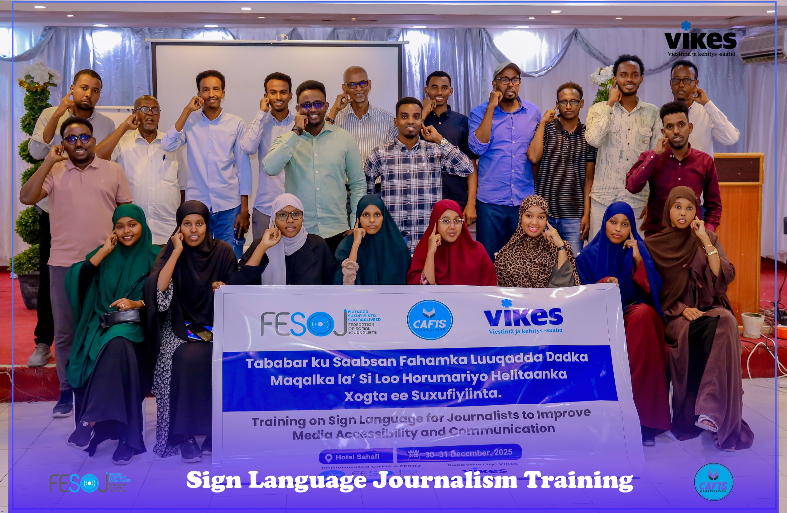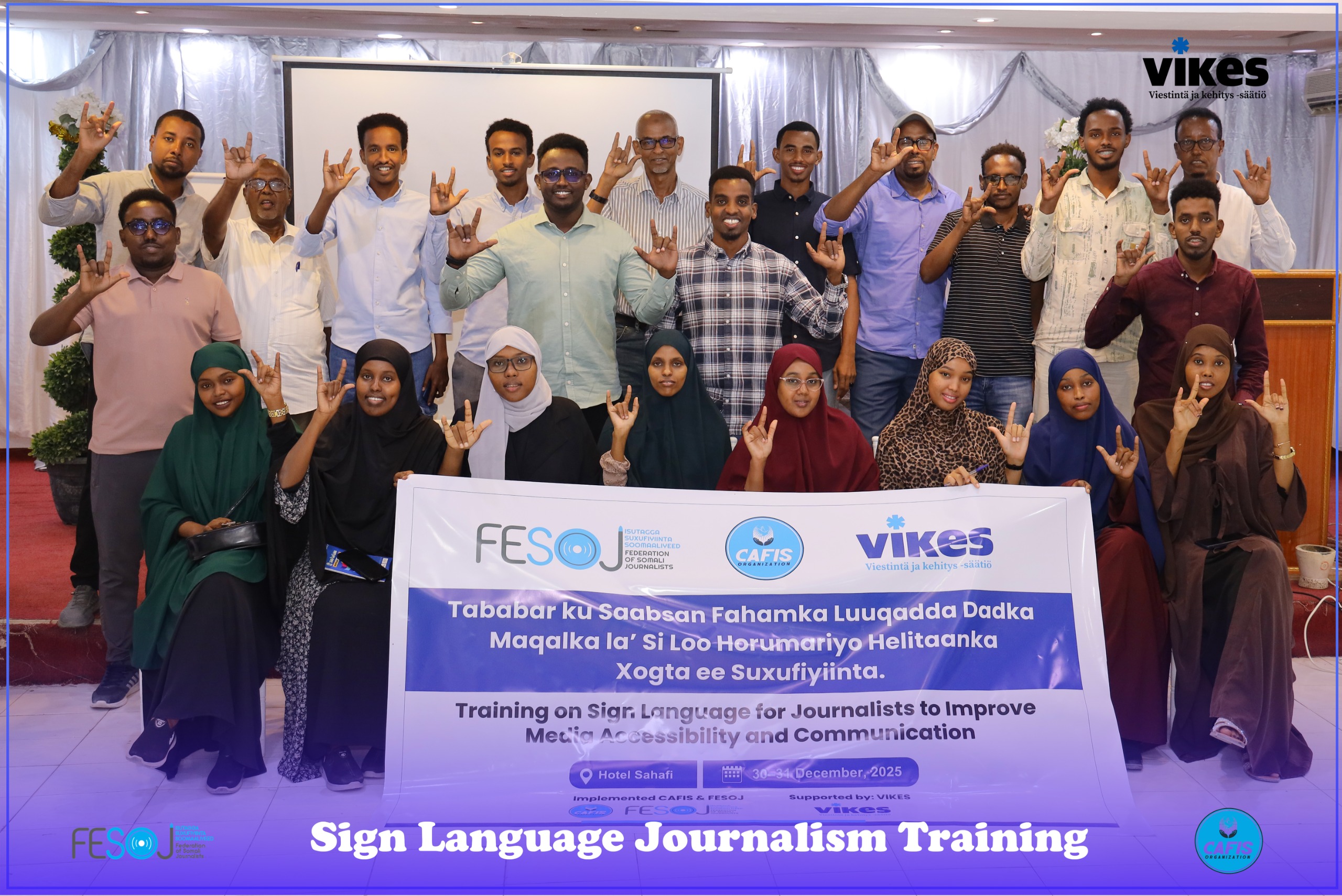 Mogadishu, Monday, January 5, 2026:CAFIS has concluded a two-day sign language training workshop in Mogadishu, aimed at promoting inclusive journalism and improving access to news and public information for deaf and hard-of-hearing communities.