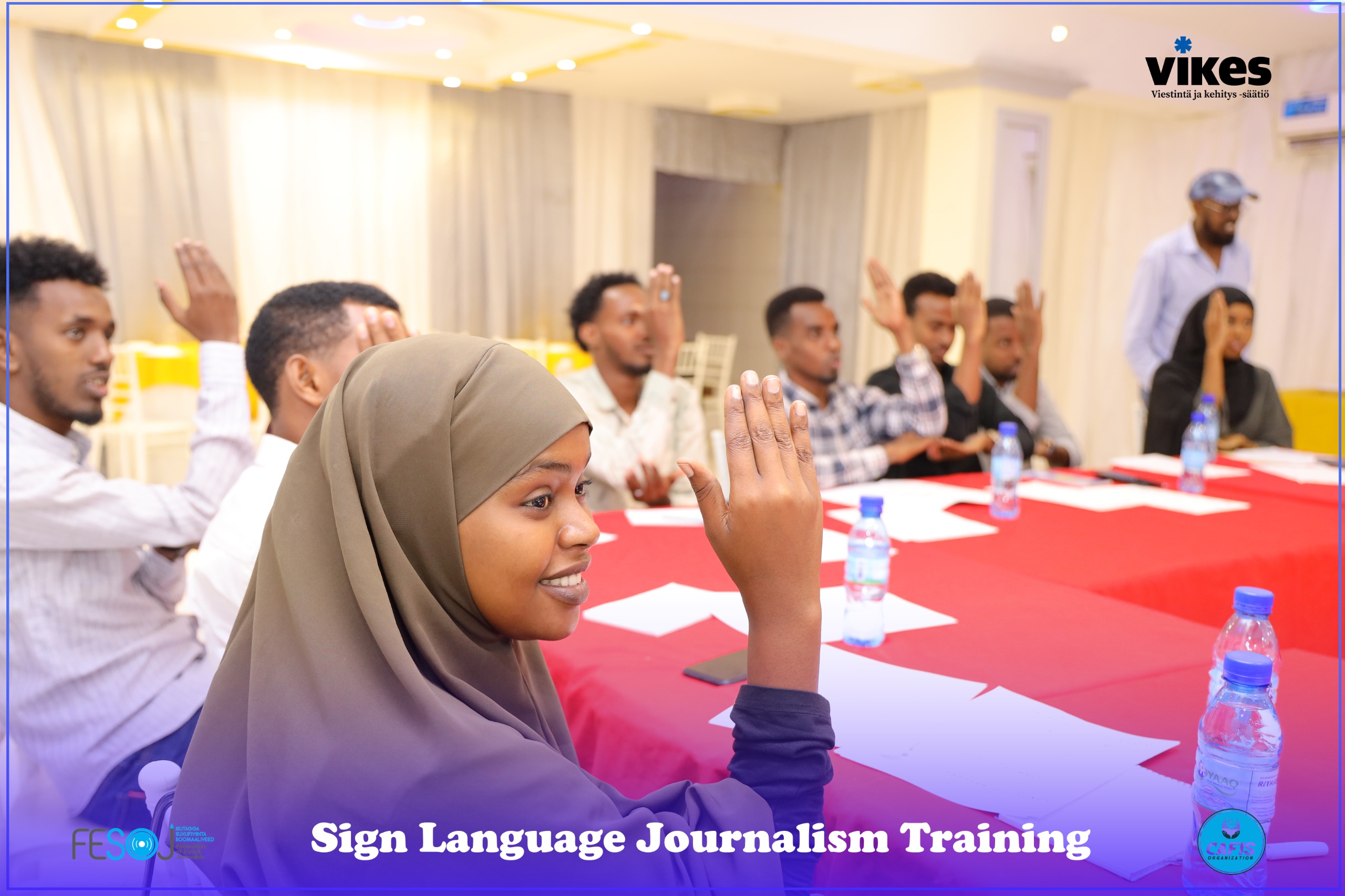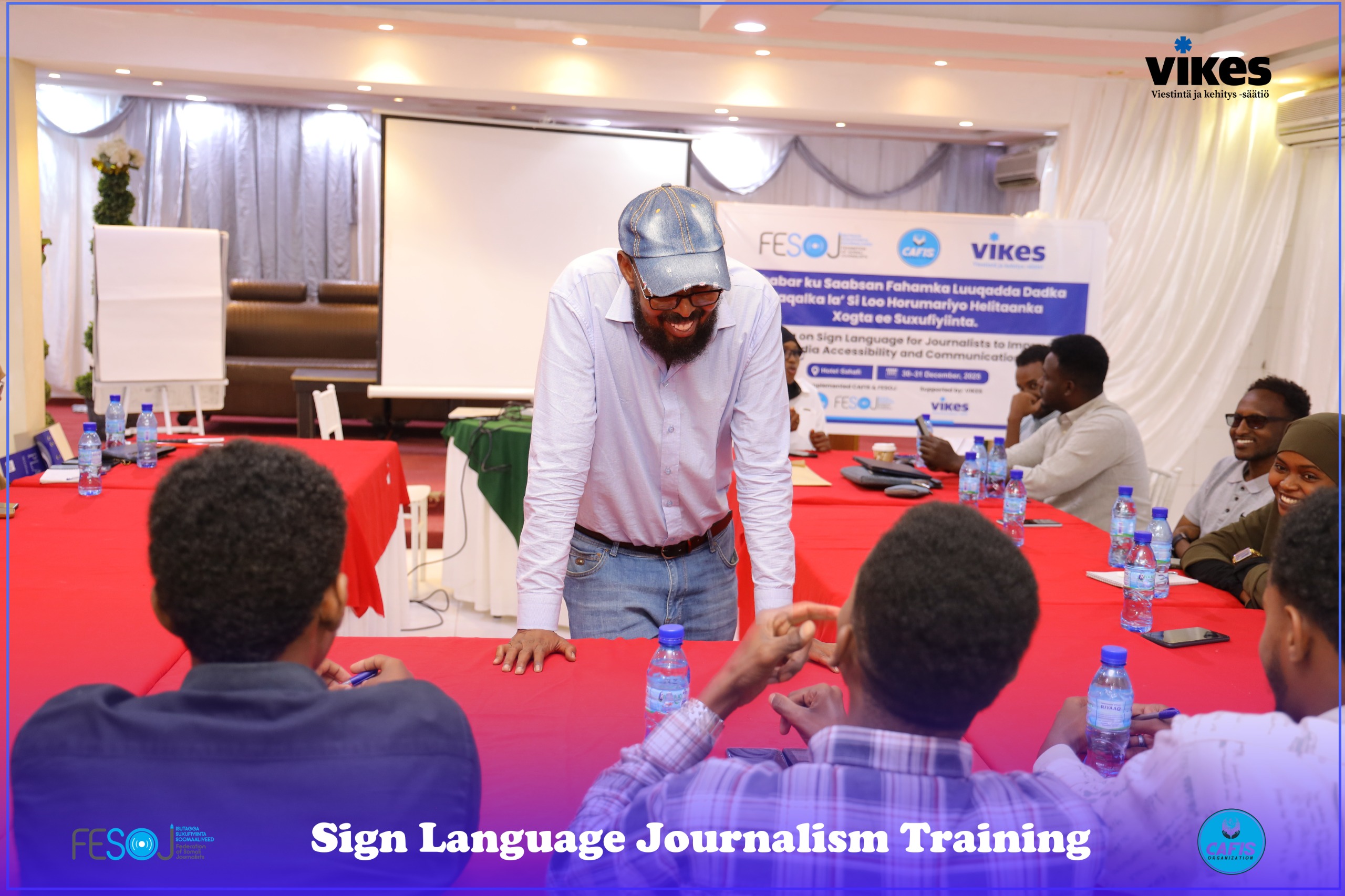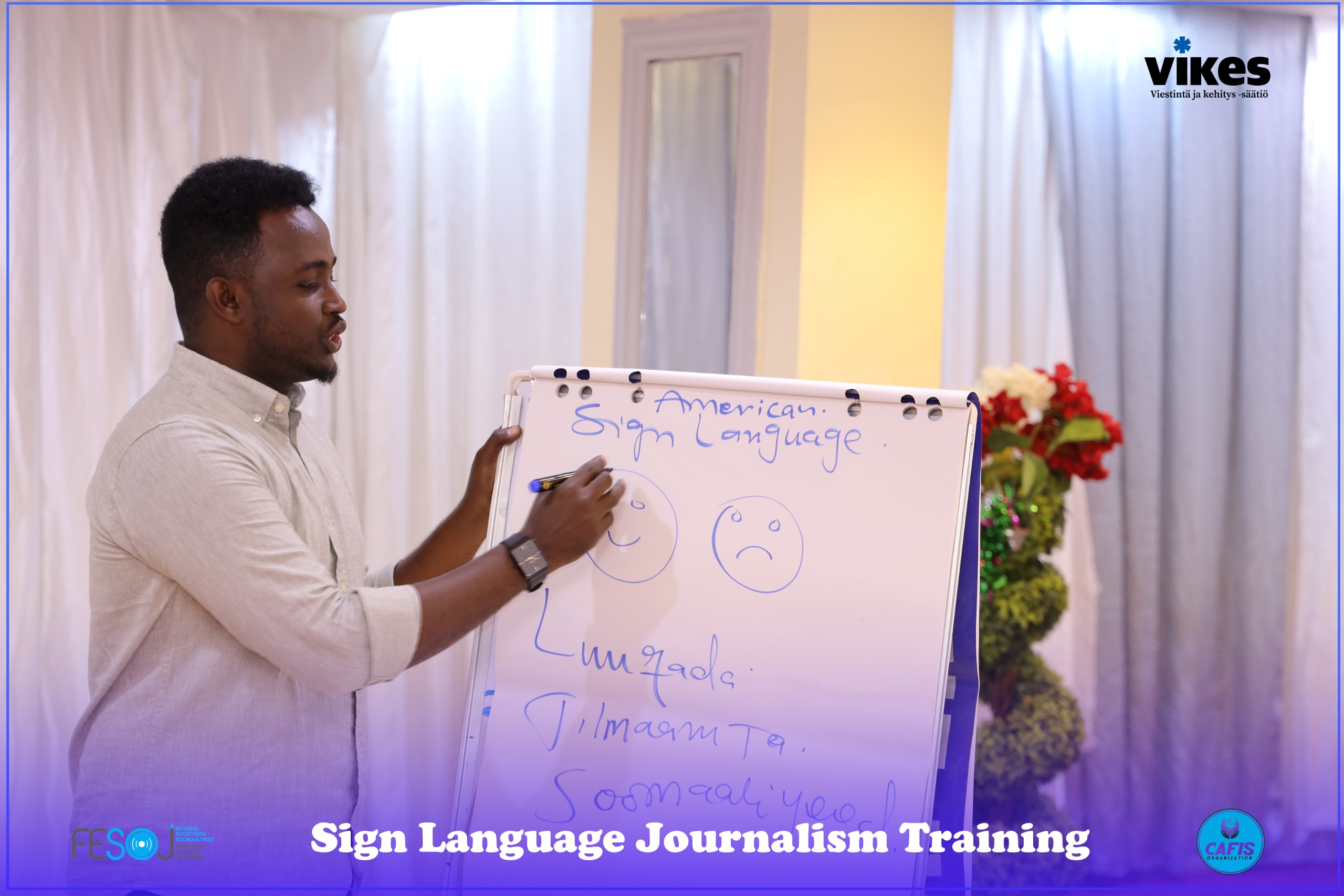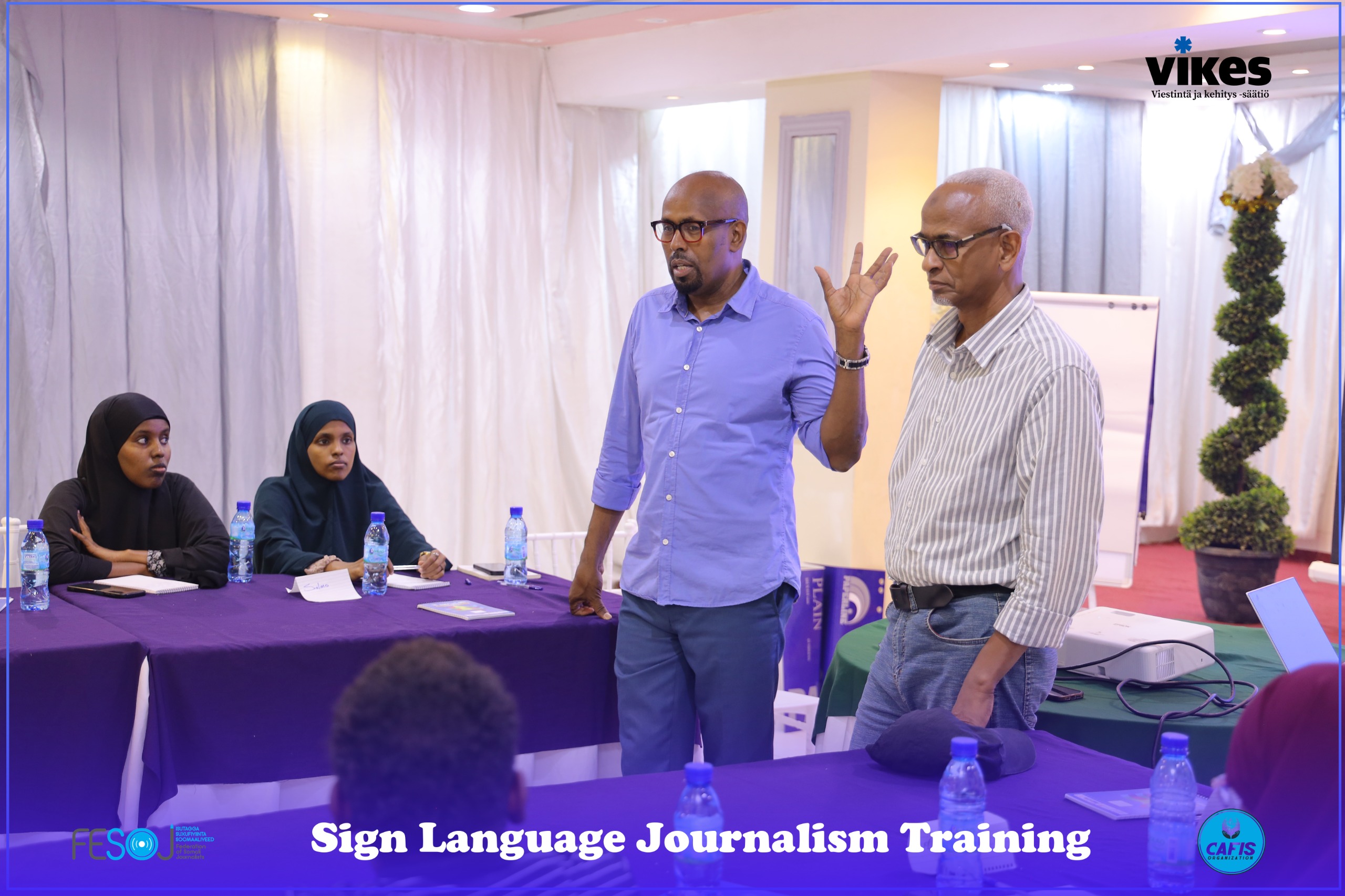 The training sessions were delivered by experts including Mohamed Osman Burci, who is hearing impaired and Wali Hashi from VIKES and works with the Finnish National Television,